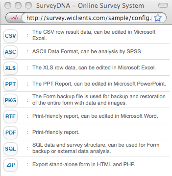 Other than checking survey result online, data can also be downloaded in designated formats.